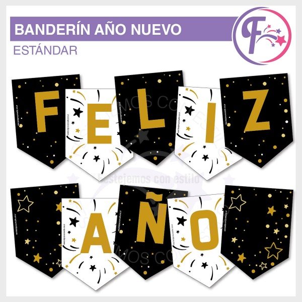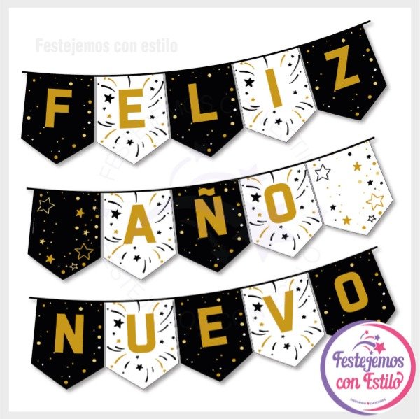 Decorá la fiesta con el banderín de feliz año nuevo para decorar en estas fiestas.