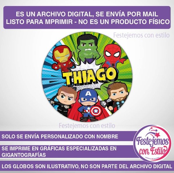 Banner personalizado digital de superheroes de Avengers, Capitan America, Iron man, Hulk, Thor, Spiderman, Hawkeye, para usar como fondo en tu mesa dulce o decorar tu evento.