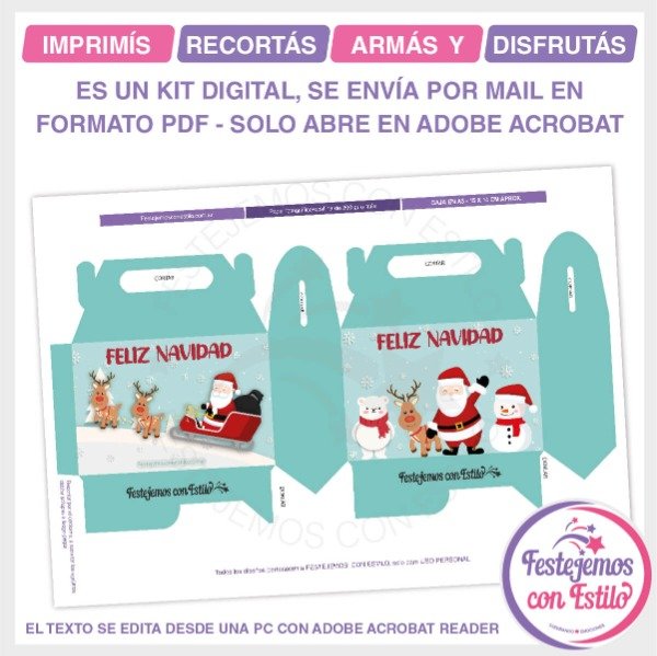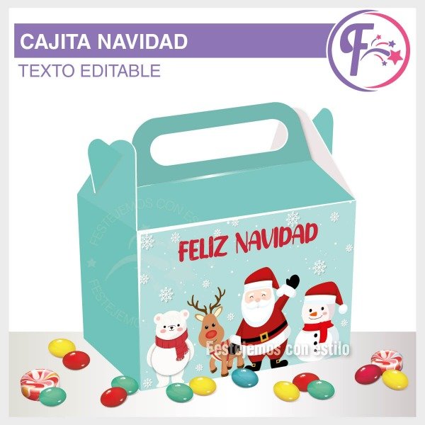 Cajita golosinera con textos editables. Para obsequiar en estas fiestas y llenar con lo que mas te guste