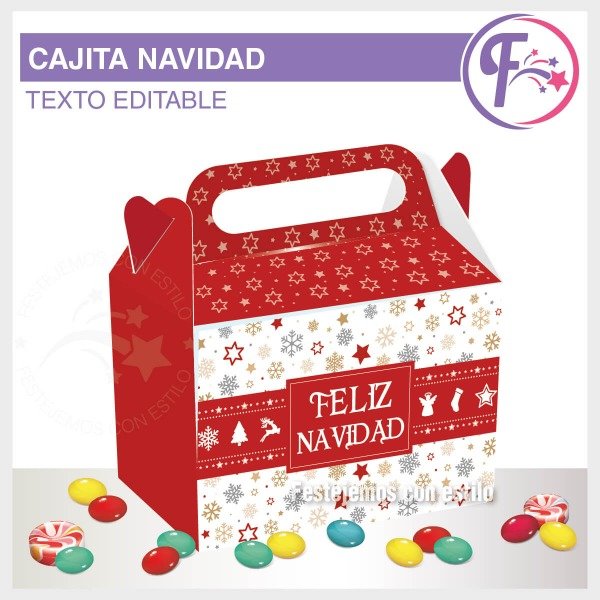 Cajita golosinera con textos editables. Para obsequiar en estas fiestas y llenar con lo que mas te guste