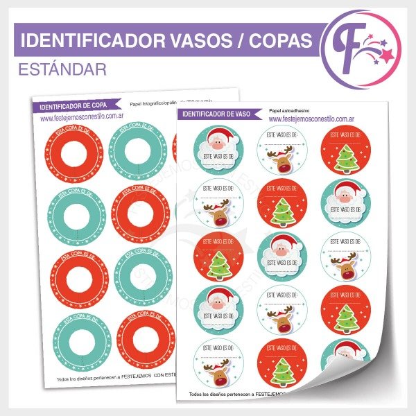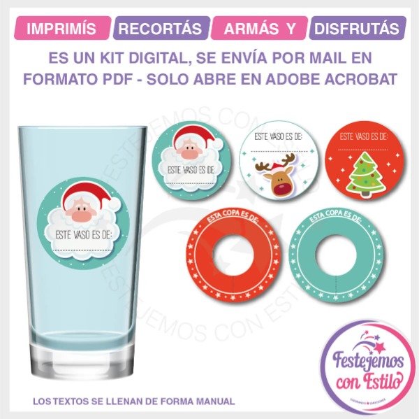 Celebrá las fiestas con un toque especial!! Con los identificadores de vasos y copas y olvidate de preocuparte de quien es cada bebida. Solo imprimís, recortas y pegas en cada vaso y le colocas el nombre de cada invitado, así de de sencillo.