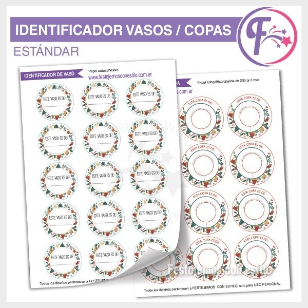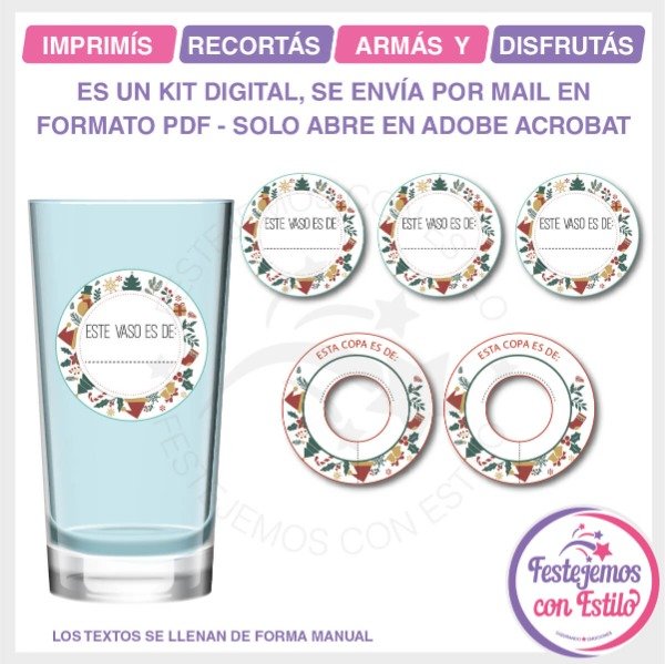 Celebrá las fiestas con un toque especial!! Con los identificadores de vasos y copas y olvidate de preocuparte de quien es cada bebida. Solo imprimís, recortas y pegas en cada vaso y le colocas el nombre de cada invitado, así de de sencillo.