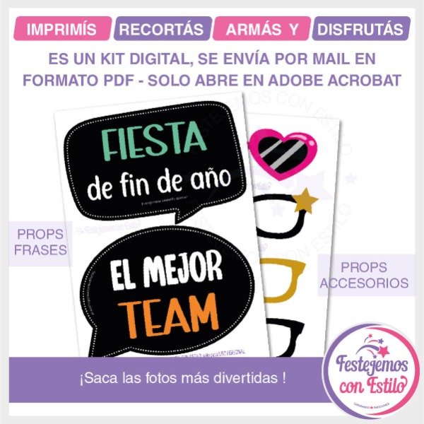 Sacate las fotos más divertidas con el kit imprimible de photo booth props de fiesta de fin año del trabajo. Con accesorios y carteles para fotos listos para imprimir, armar y empezar a disfrutar!.