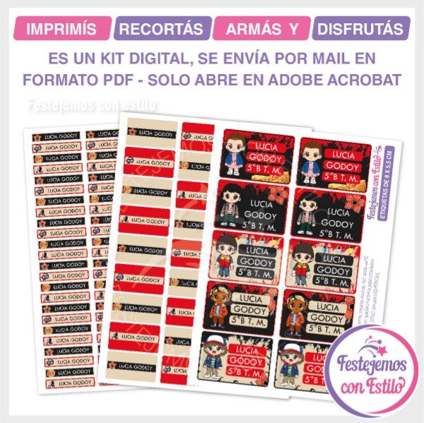 Son súper prácticas para pegar en cuadernos, libros, lápices y demás útiles. El kit es un archivo digital, te llega por mail un link de descarga, luego solo editas el texto, lo imprimís y lo pegas donde deseas. ¡Así de fácil!!