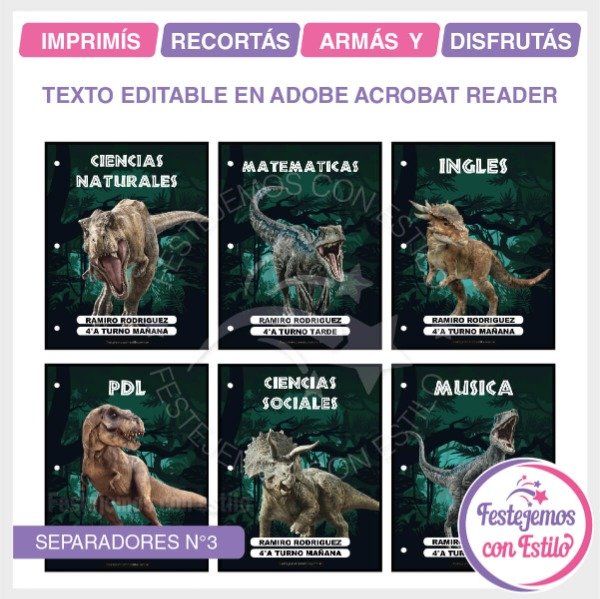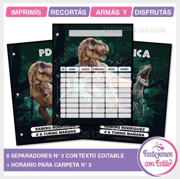 Kit escolar de separadores de carpeta N° 3 para imprimir, con la tematica de Jurassic world
