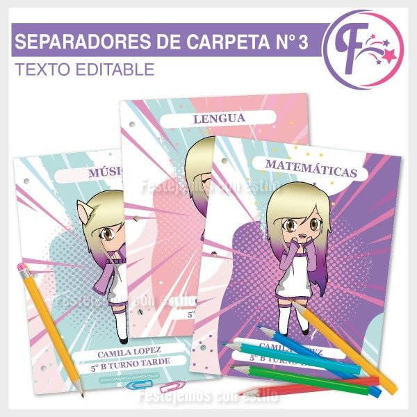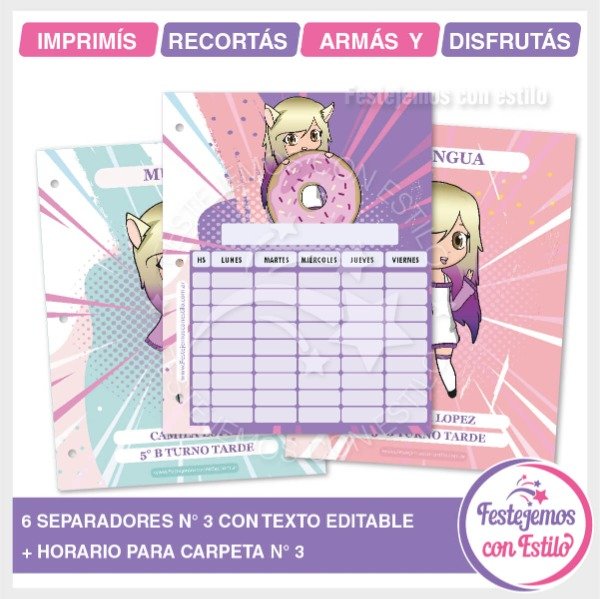 Kit escolar de separadores de carpeta N° 3 para imprimir, con la tematica de Lyna