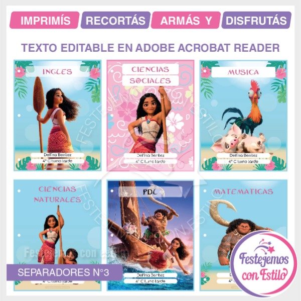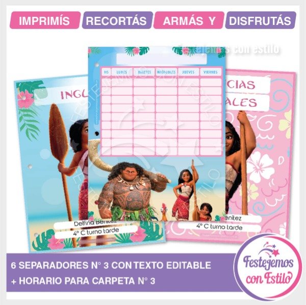 Kit escolar de separadores de carpeta N° 3 para imprimir, con la tematica de Moana