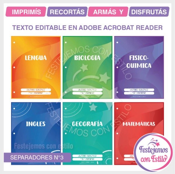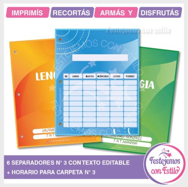 - 6 separadores para imprimir, para carpeta nº3 (Con textos editables) acomodados en hoja A4