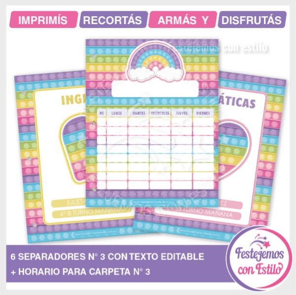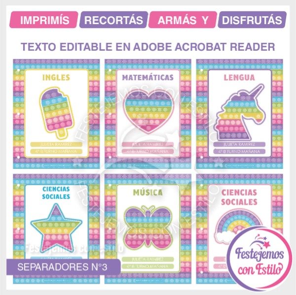 Kit escolar de separadores de carpeta N° 3 para imprimir, con la temática de Pop it