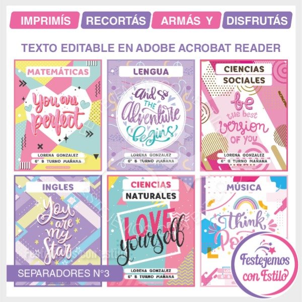 - 6 separadores para imprimir, para carpeta nº3 (Con textos editables) acomodados en hoja A4